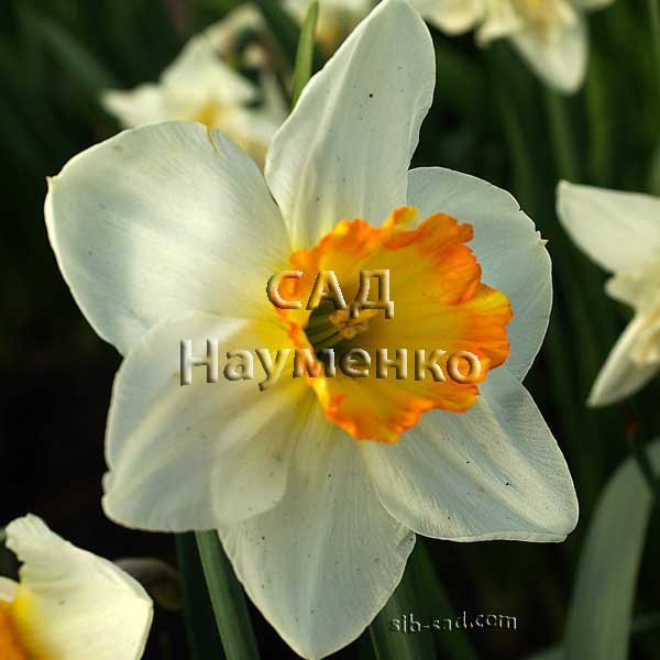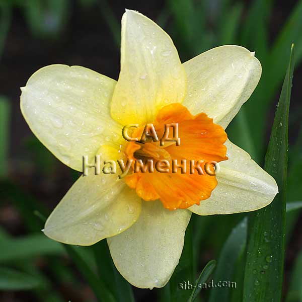 2 W-O Крупный кремово-белый, коронка оранжевая, гофрированная.