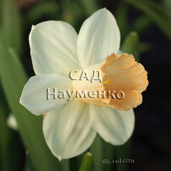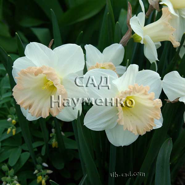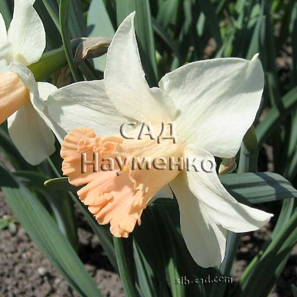 1 (b) W-Y Цветы очень крупные, белые, коронка персиковая, широкая и красиво гофрирована.