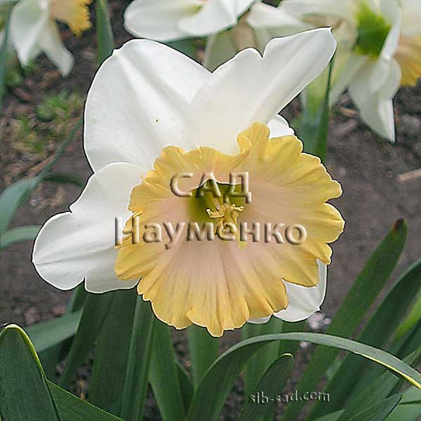 1W-W Коронка и трубка в начале цветения лимонные, далее становятся белыми. Цветок крупный.
