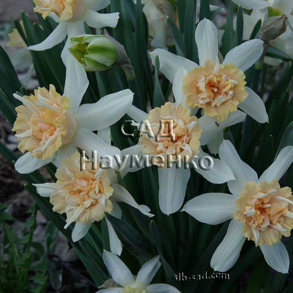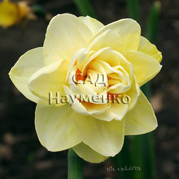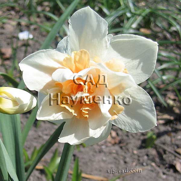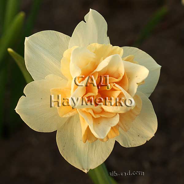 4 W-O Очень крупный, махровый. Цвета слоновой кости, с золотисто-оранжевой многослойной махровой коронкой. Высота 45 см.