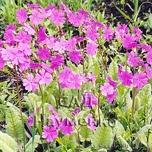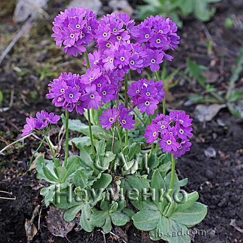 Миниатюрная примула высотой до 10 см. Цветы лилово-розовые в головчатом шаровидном соцветии. Напоминает миниатюрную примулу мелкозубчатую.