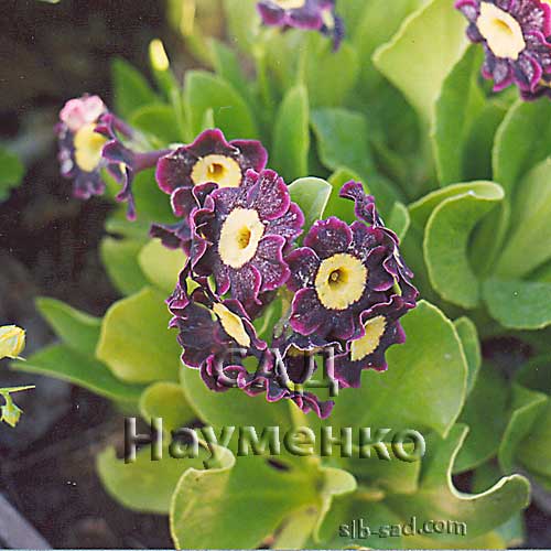 Высота до 25 см. Листья прикорневые, крупные, морщинистые, групнозубчатые. Цветки пурпурно-розовые с желтым горлышком на высоких цветоносах собраны в крупные зонтичные соцветия. Цветет очень обильно и долго (весь май).