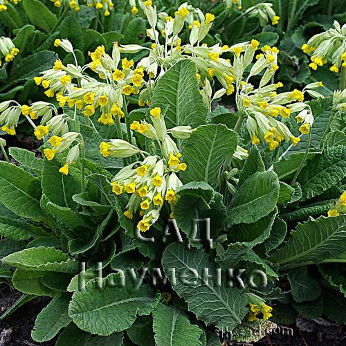 Англичане называют это растение "COWSLIP". В диком виде растет в Южной и Средней Европе. Высота 15-25 см, листья ярко-зеленые. Цветки поникающие желтые с оранжевым пятном в зеве, собраны в некрупное соцветие.