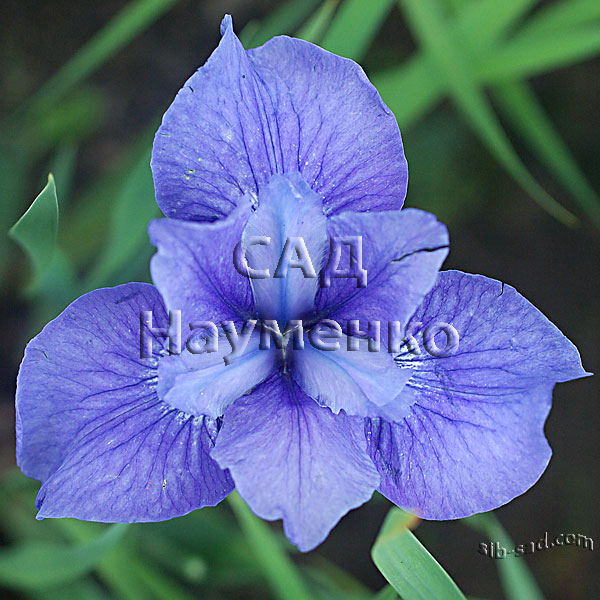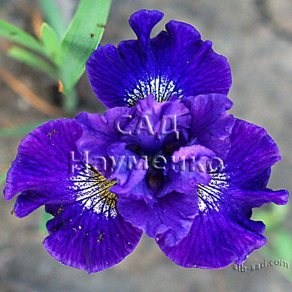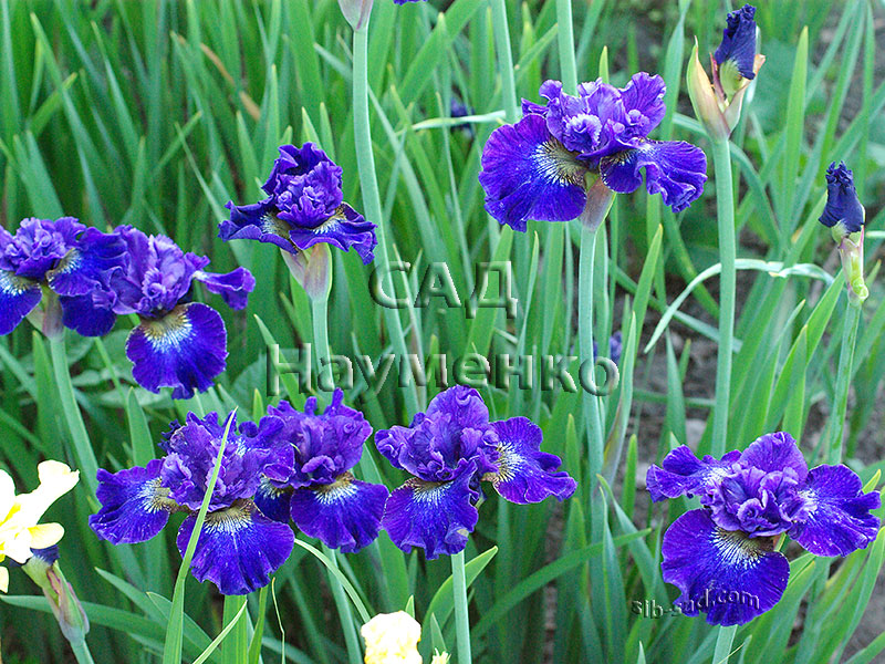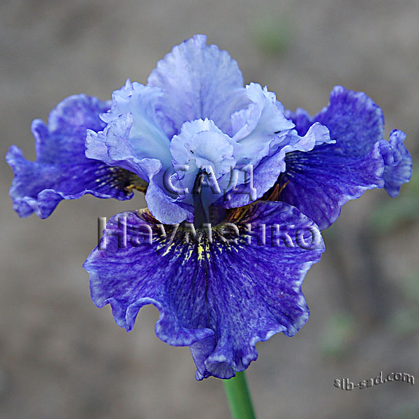 Цветок очень чистой синей окраски с белым сигналом, гофрирован крупными складками с парящими Ф. Идеально округлой формы. (Tet). Шедевр! Высота, см: 81 (84).* Срок цветения: С. Награды: HM: 2000; AM: 2002; MWM: 2004.