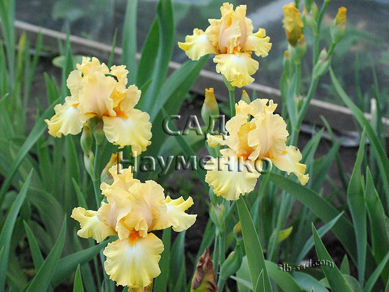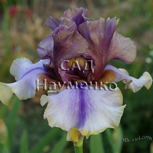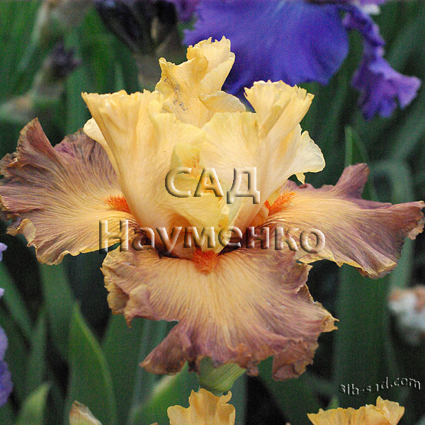 Ст. – жёлтые, Ф. – светло-фиолетовые с серо-оранжевой каймой и серо-жёлтыми Б. Высота, см: 91. Срок цветения: С-ОП.