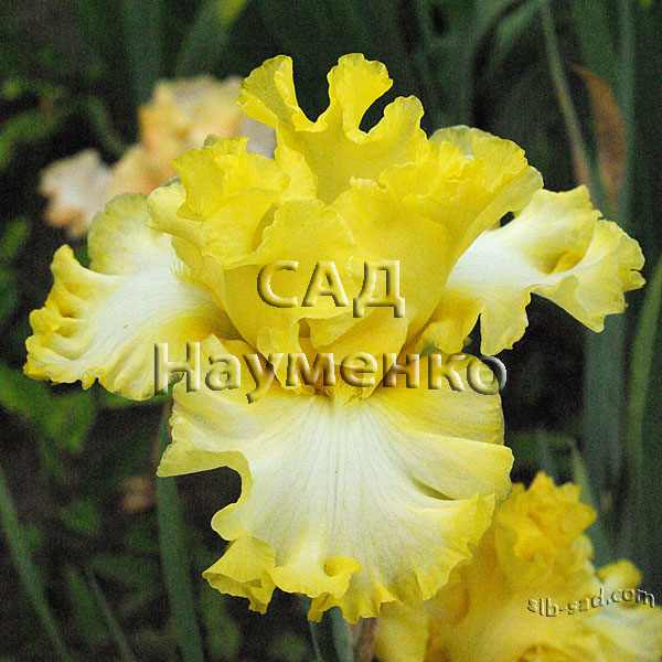 Прекрасный интенсивно-голубой цветок с кремовыми Б., очень гофрированный.