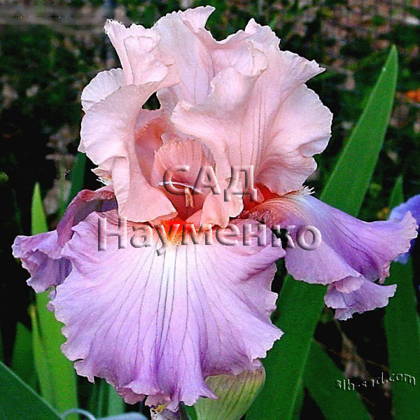 Цветок с гофрированными розовыми стандартами и лавандовыми фолами.