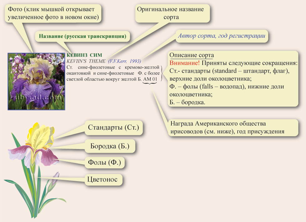 Терминология и обозначения в ирисоводстве (согласно официально сайта РОИ, http://ruiris.narod.ru/index.html")